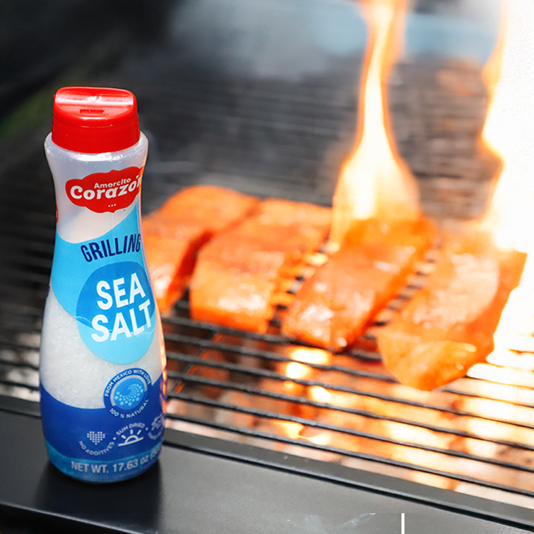 Unta generosamente el lado carnoso de los filetes de salmón con Aceite de Aguacate Amorcito Corazón. Sazona con Sal Parrillera Amorcito Corazón y pimienta.